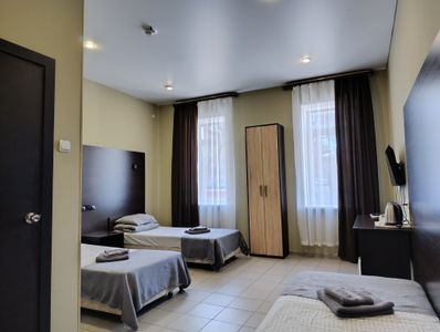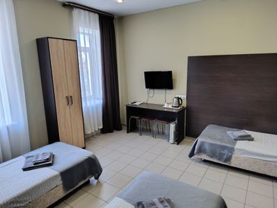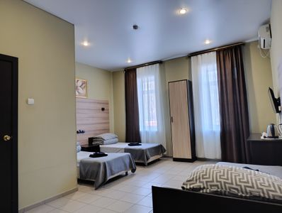 Все номера оснащены ванной комнатой, в номере есть все для комфортного пребывания: Кровати с ортопедическими матрасами, чистое бельё, Телевизор ЖК 32"", чайник, фен, индивидуальные гигиенические наборы, 3 полотенца для каждого гостя.